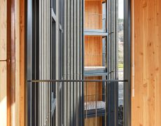 - Die Hybridbauweise (Kombination von Massiv-und Holzbau) sorgt für ein
