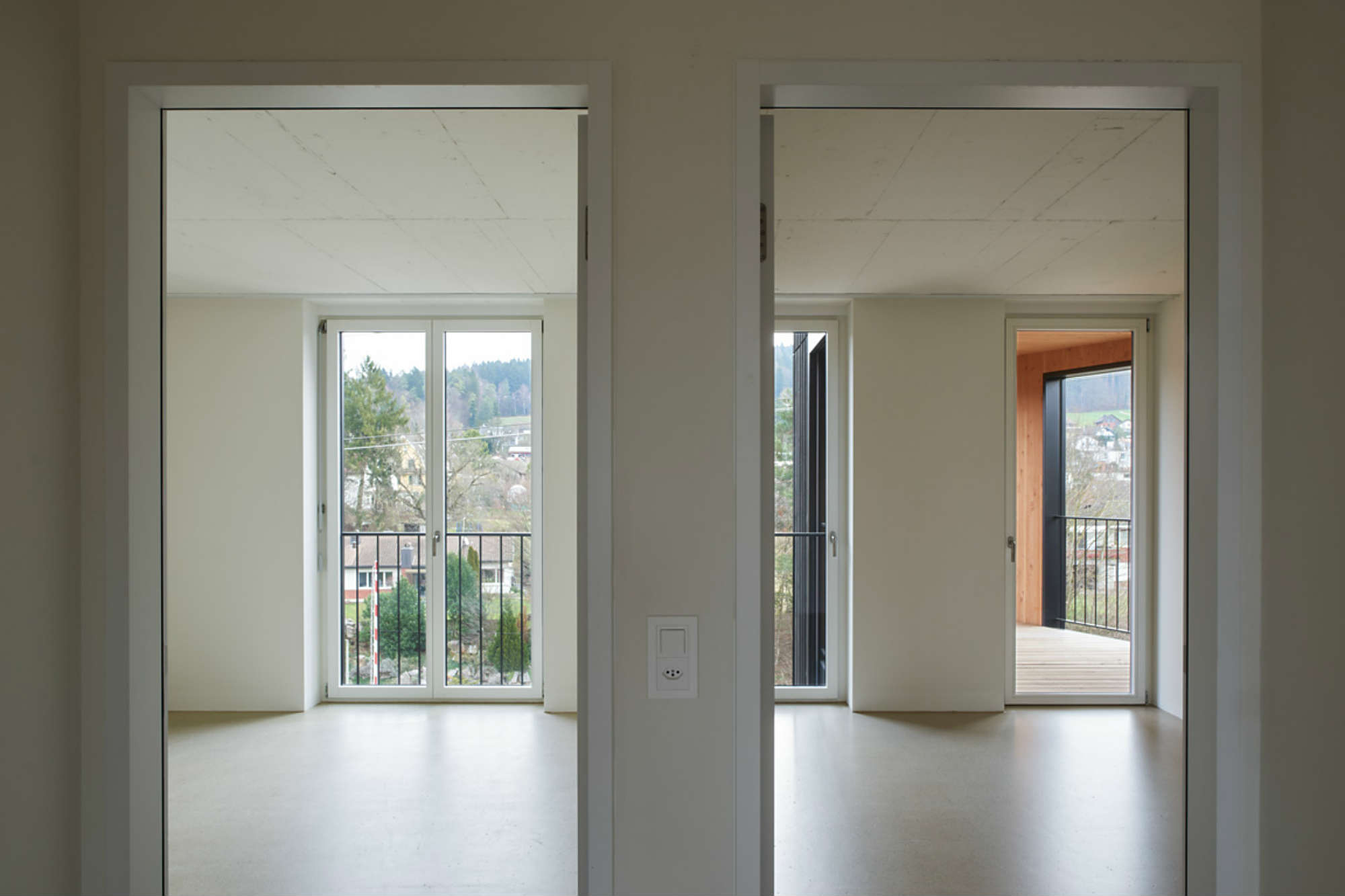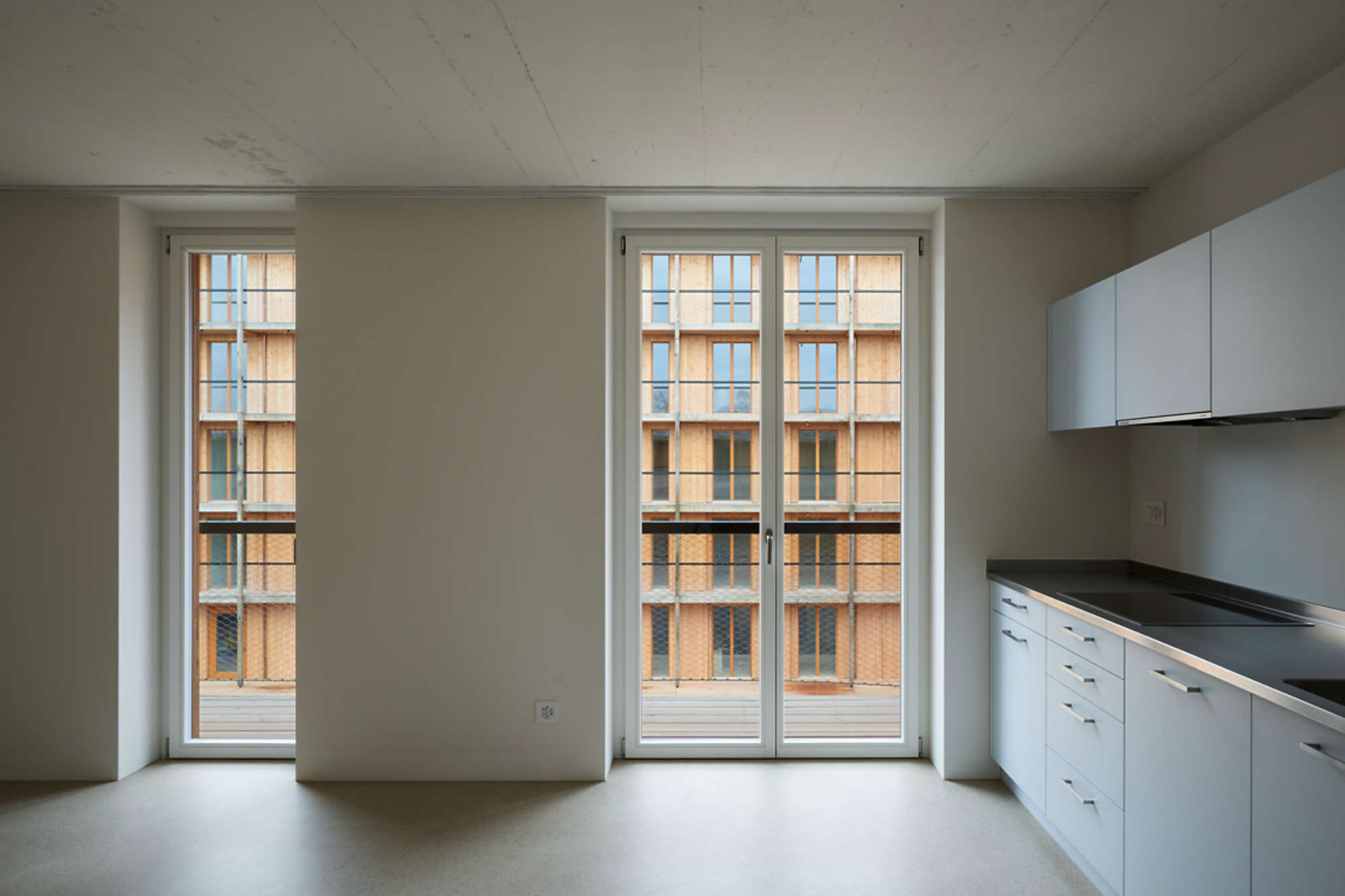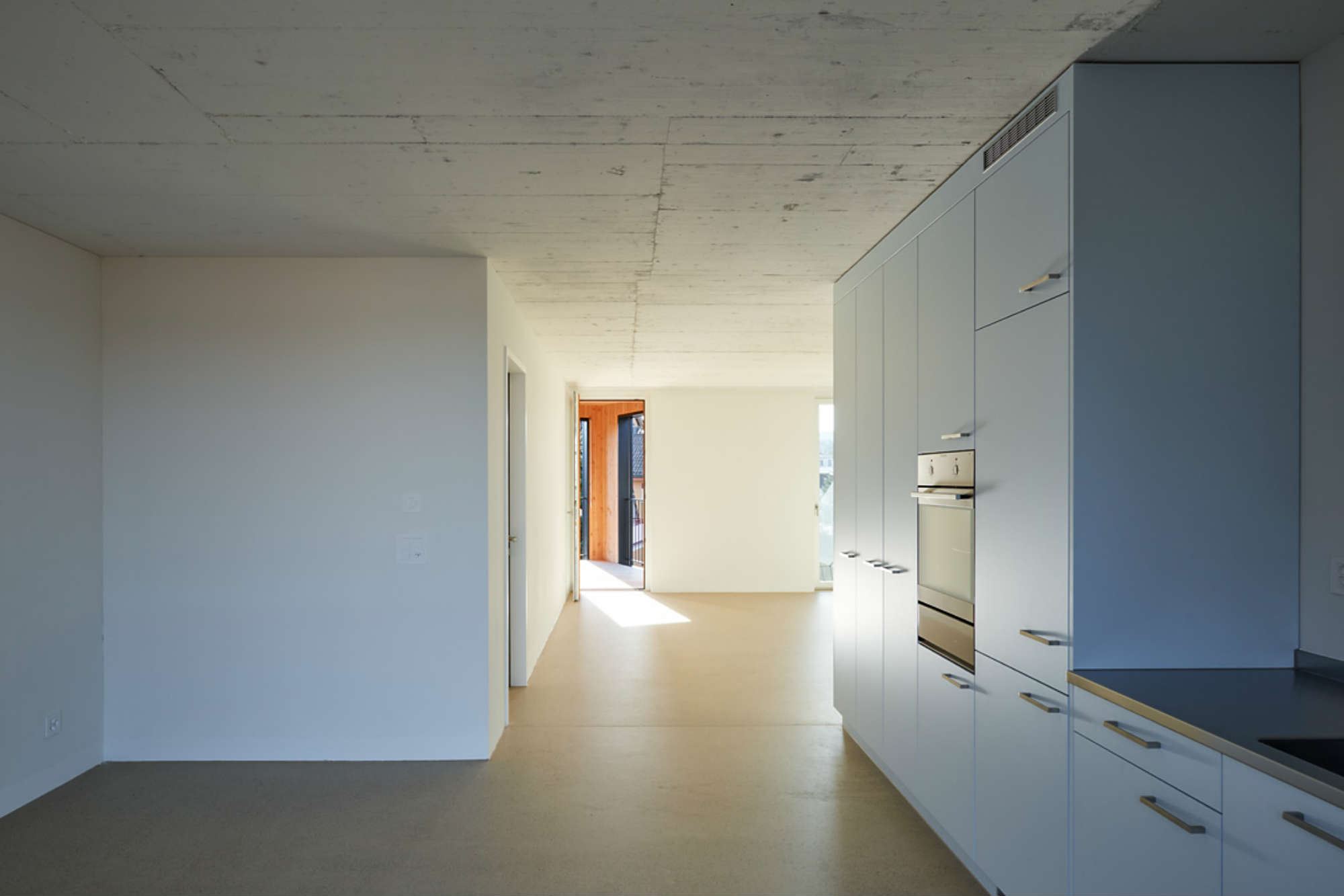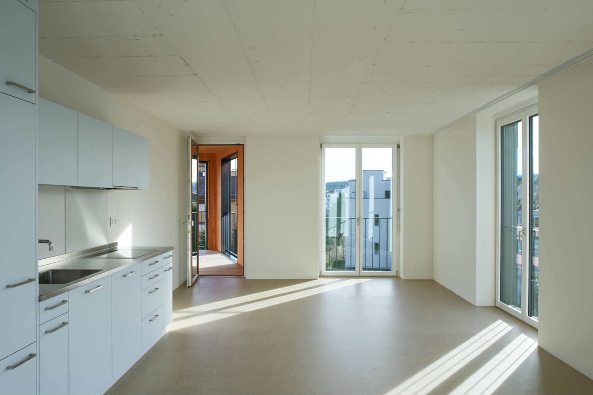 In einer ersten Etappe wird das Hofgebäude mit 50 Mietwohnungen und 11 Zusatzzimmern fertiggestellt. Das Hofgebäude wurde Anfang 2018 bezogen. Es sind verschiedene Wohnungen in der Grösse von 1.5 – 5.5 Zimmern verfügbar. Alle Wohnungen (ausser 1.5 Zimmerwohnungen) haben ein privates Aussenzimmer und eine vorgelagerte Verandaschicht zum gemeinsamen Hof hin.