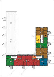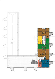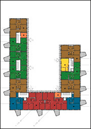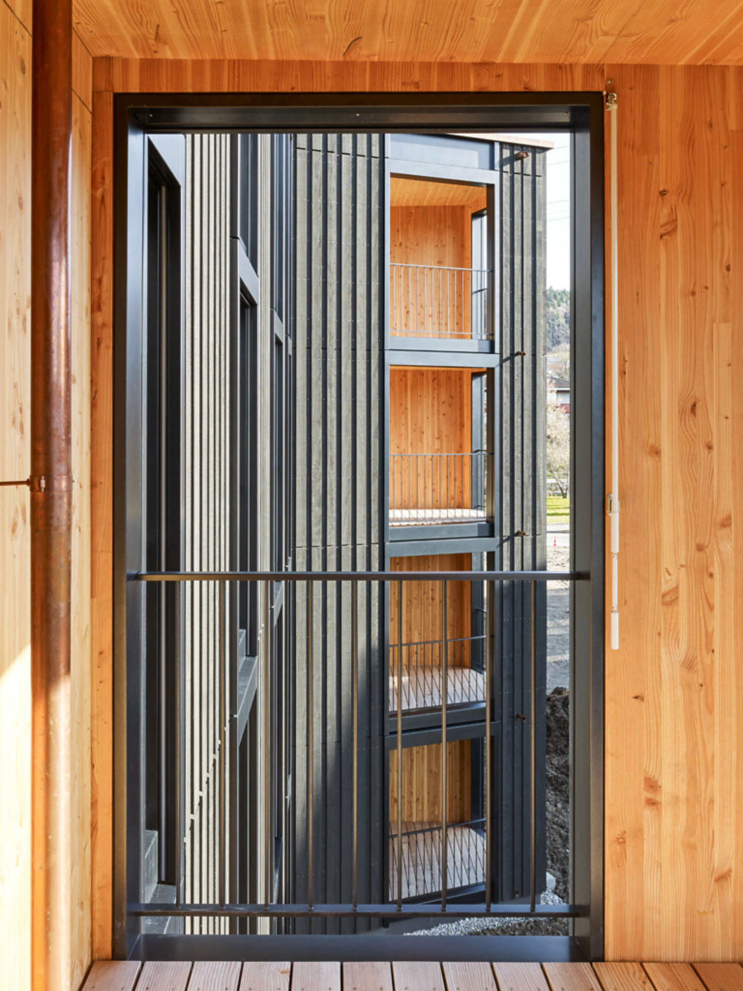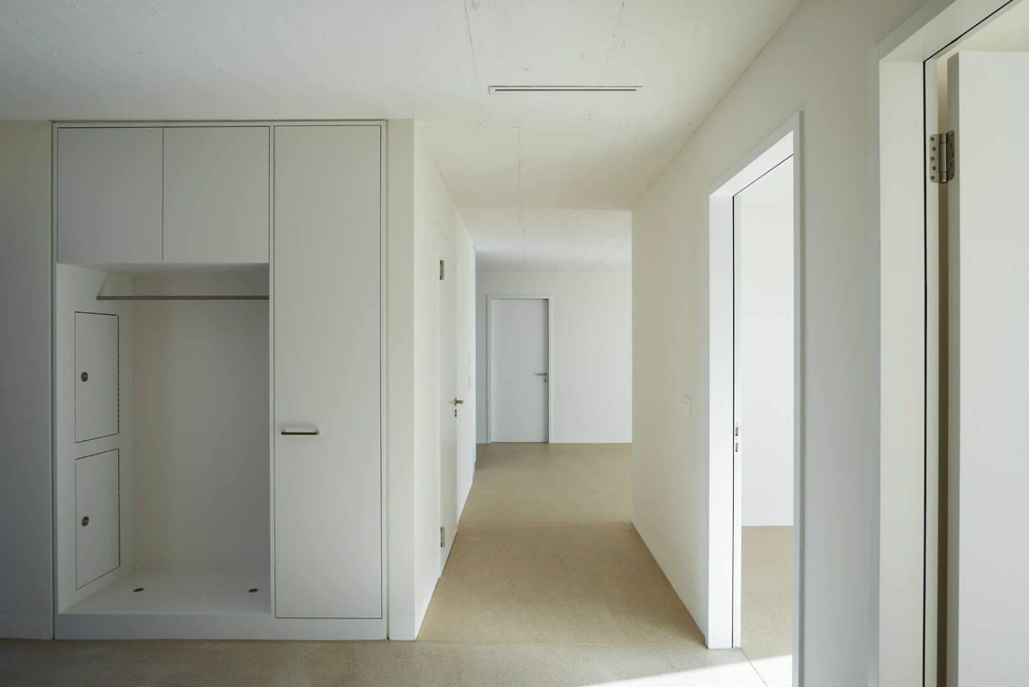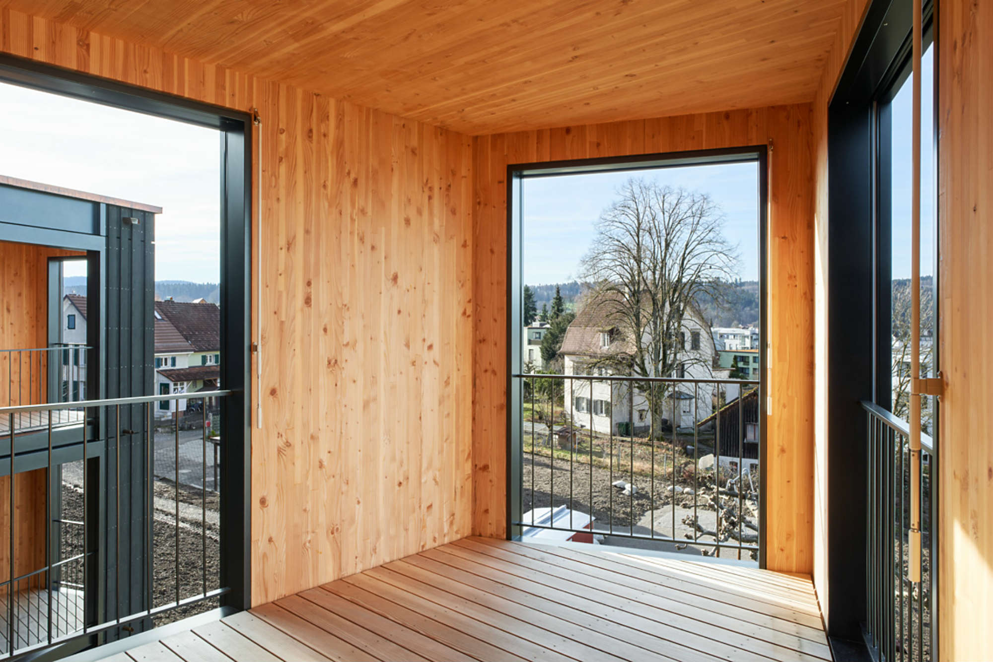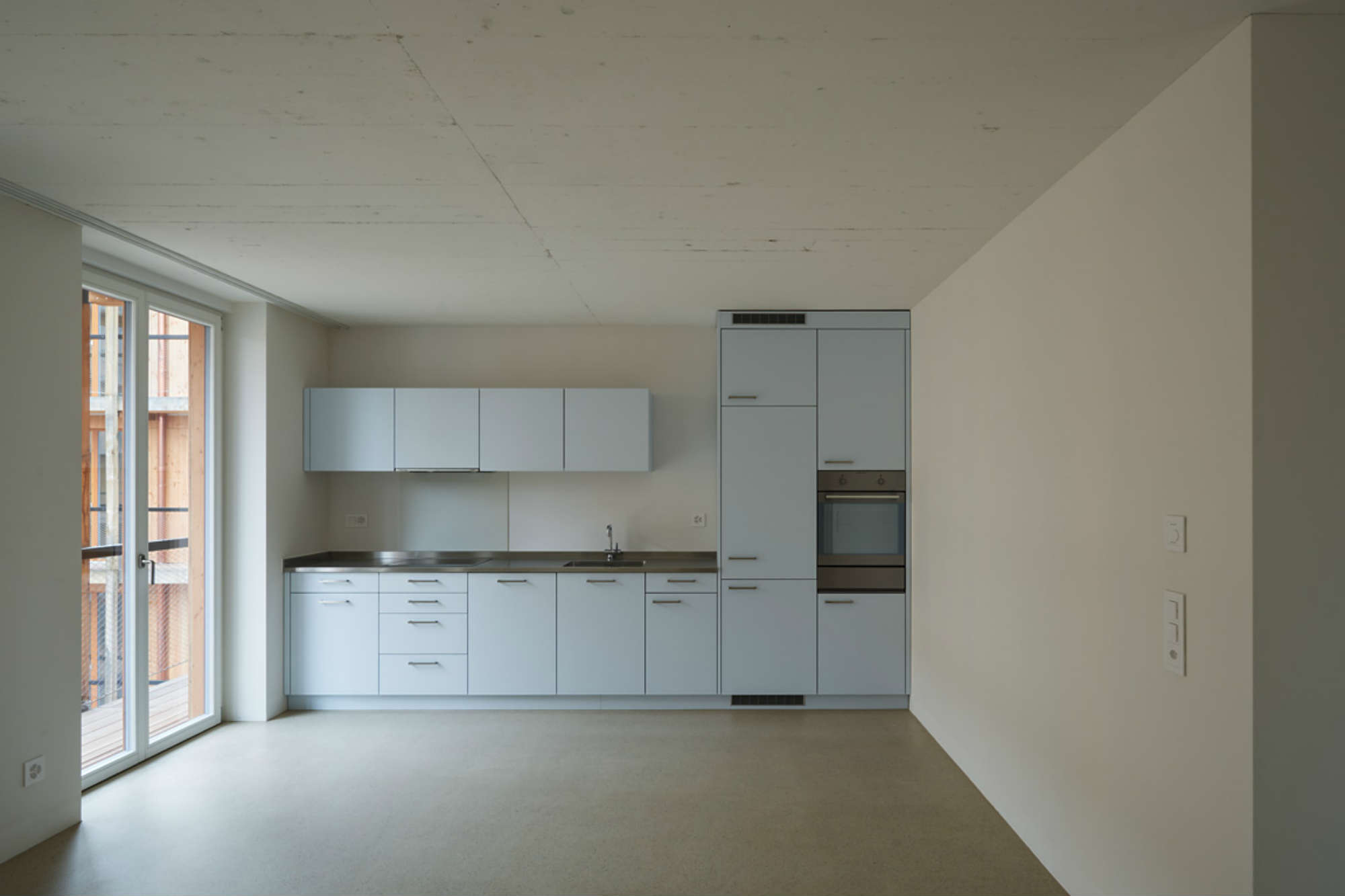 In einer ersten Etappe wird das Hofgebäude mit 50 Mietwohnungen und 11 Zusatzzimmern fertiggestellt. Das Hofgebäude wurde Anfang 2018 bezogen. Es sind verschiedene Wohnungen in der Grösse von 1.5 – 5.5 Zimmern verfügbar. Alle Wohnungen (ausser 1.5 Zimmerwohnungen) haben ein privates Aussenzimmer und eine vorgelagerte Verandaschicht zum gemeinsamen Hof hin.